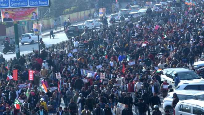देहरादून। अंकिता भंडारी हत्याकांड की सीबीआई जांच और सोशल मीडिया पर नाम सार्वजनिक हुए वीआईपी नेताओं पर कार्रवाई की मांग के लिए रविवार को जनसैलाब दून की सड़कों पर उतर आया। विभिन्न सामाजिक संगठन और विपक्षी राजनीतिक दलों ने मुख्यमंत्री आवास कूच किया। हालांकि पहले से तैनात भारी पुलिस बल ने प्रदर्शनकारियों को हाथीबड़कला पर बैरिकेडिंग लगा रोक दिया।