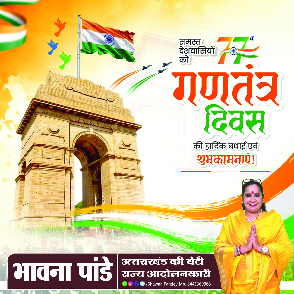 देहरादून। आज 26 जनवरी है और देशभर में 77वां गणतंत्र दिवस धूमधाम से मनाया जा रहा है। देश के इस पावन महापर्व के अवसर पर उत्तराखण्ड की बेटी, वरिष्ठ राज्य आंदोलनकारी एवं प्रसिद्ध समाजसेवी भावना पांडे ने समस्त देशवासियों को हार्दिक बधाई एवं शुभकामनाएं दी हैं।