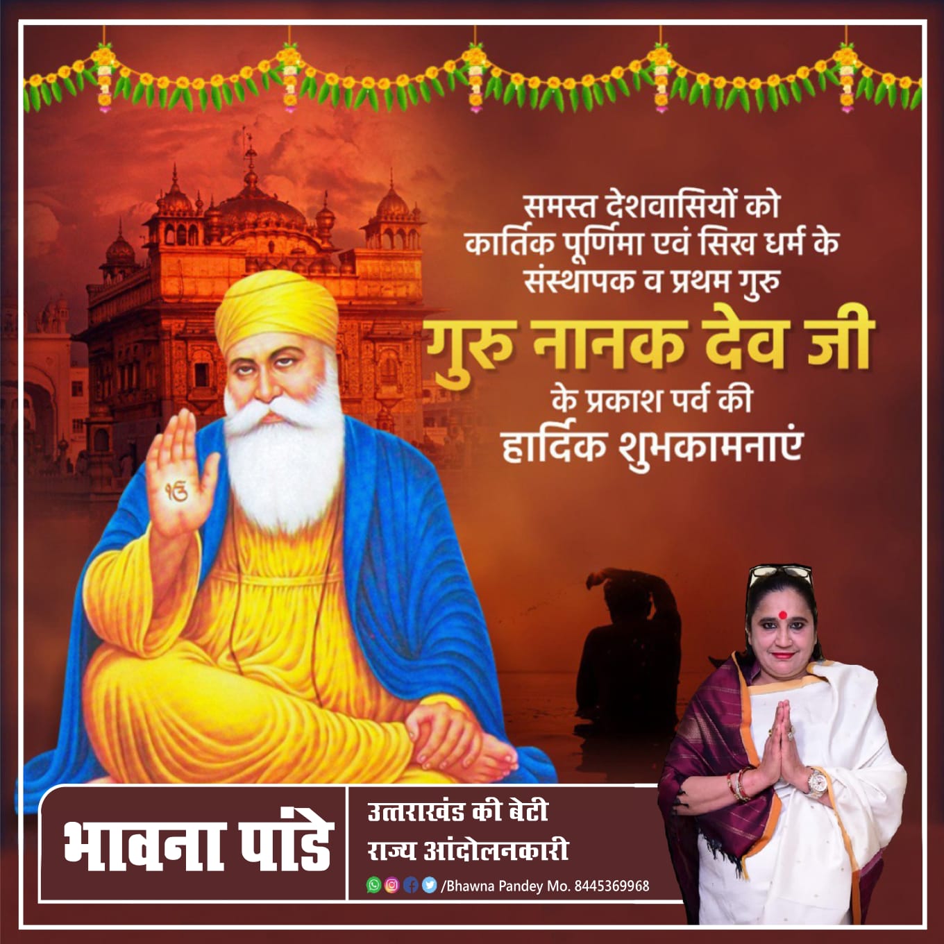 इस अवसर पर जारी अपने शुभकामना सन्देश में उत्तराखंड की बेटी भावना पांडे ने कहा- “समस्त देशवासियों को कार्तिक पूर्णिमा, गंगा स्नान, देव दीपावली एवँ गुरु नानक जयंती (प्रकाशोत्सव) की हार्दिक बधाई व शुभकामनाएं। आपके जीवन में ये पर्व नई खुशियां, उत्साह, उमंग एवँ सुख-समृद्धि लेकर आएं ऐसी कामना है।”
